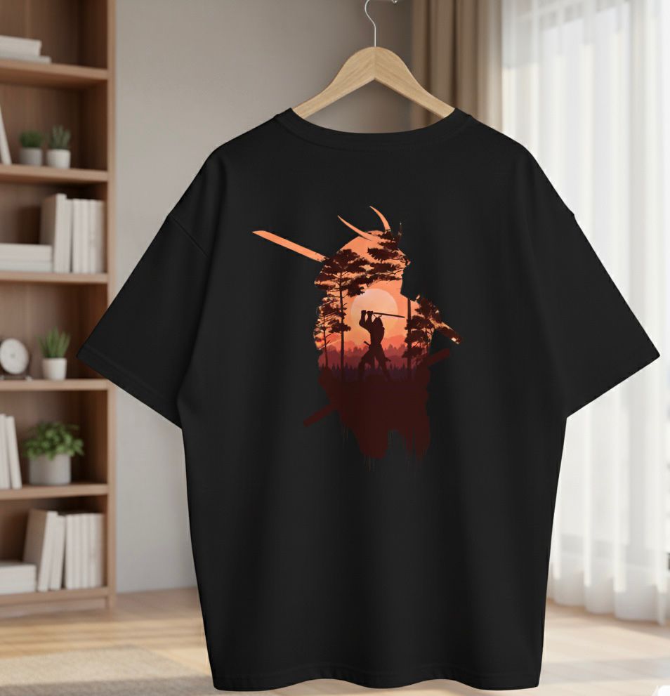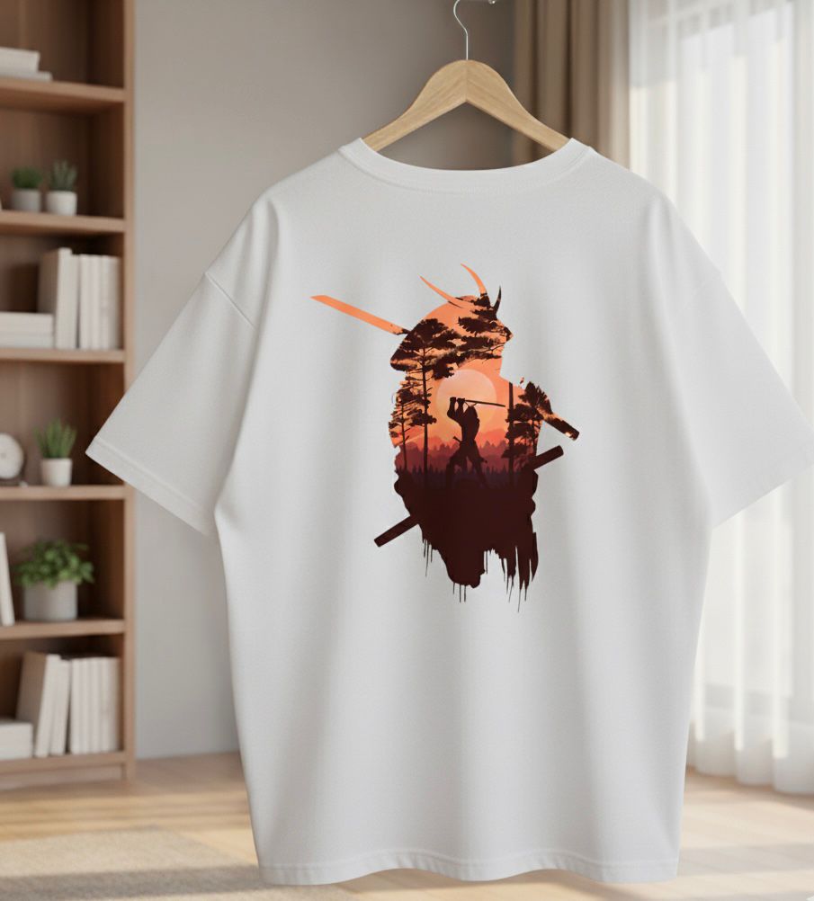 Unleash your warrior spirit with our Samurai drop shoulder tee, available in both black and white. Featuring a striking samurai silhouette against a fiery backdrop, this tee adds a bold touch to your style. 🔥